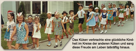 eine glückliche Kindheit im Kreise der anderen Küken und sang diese